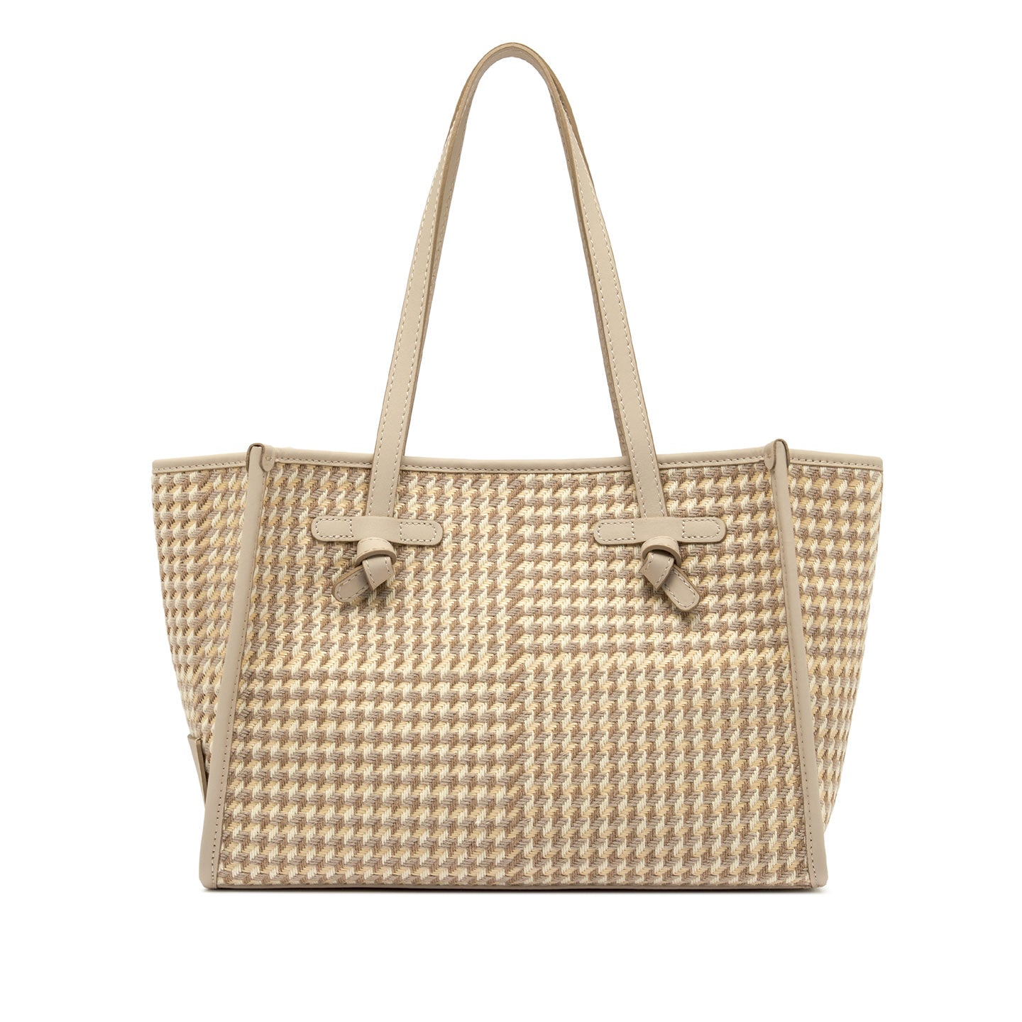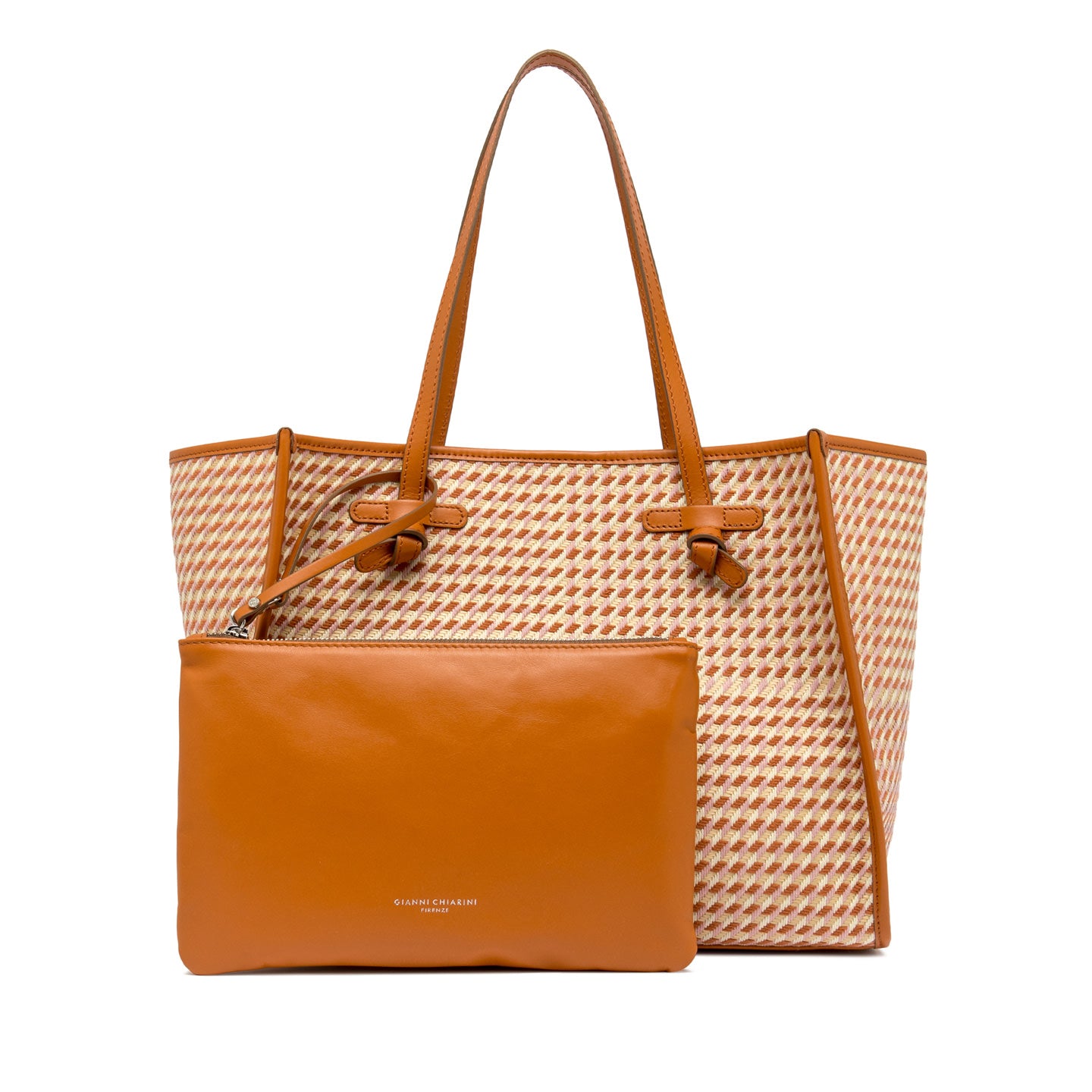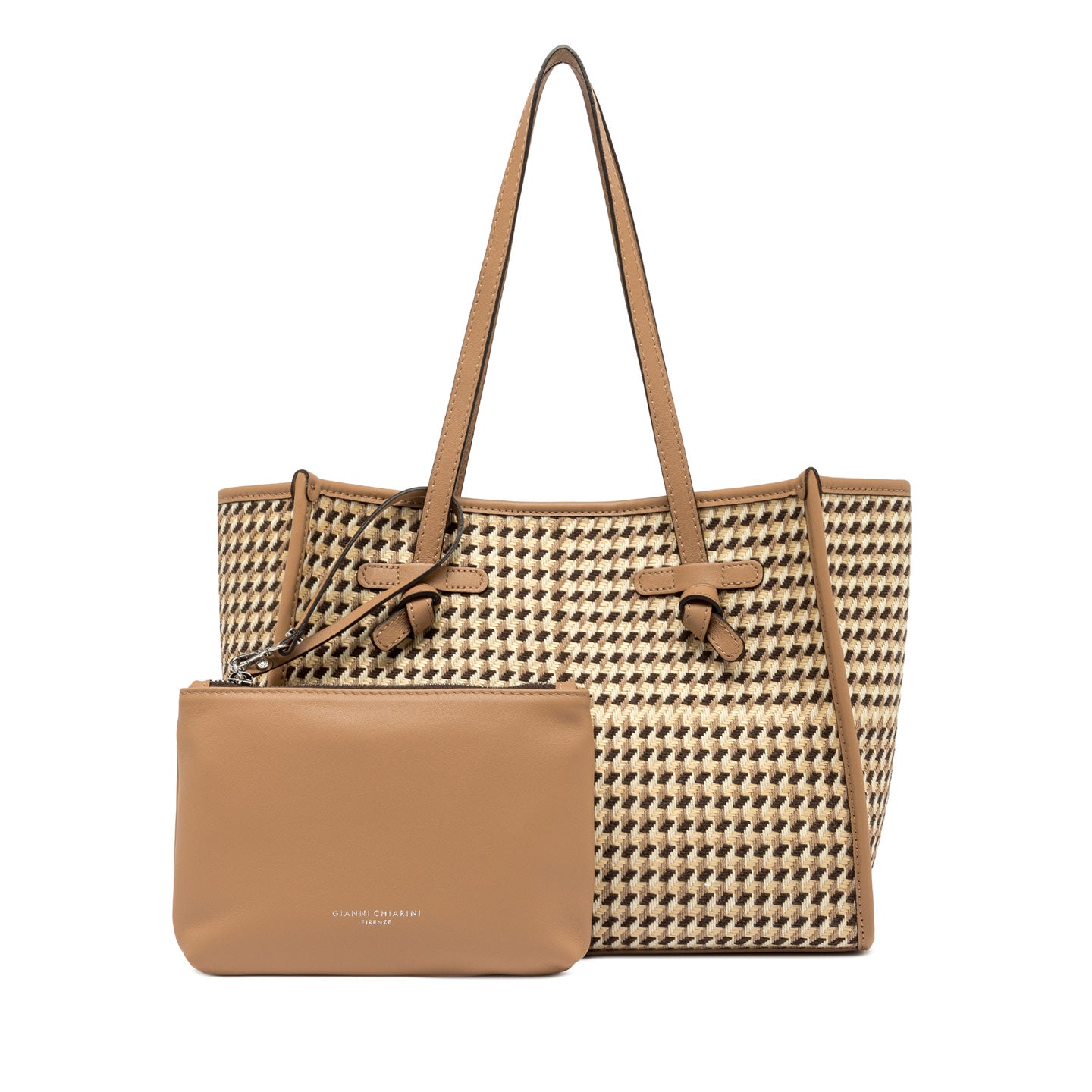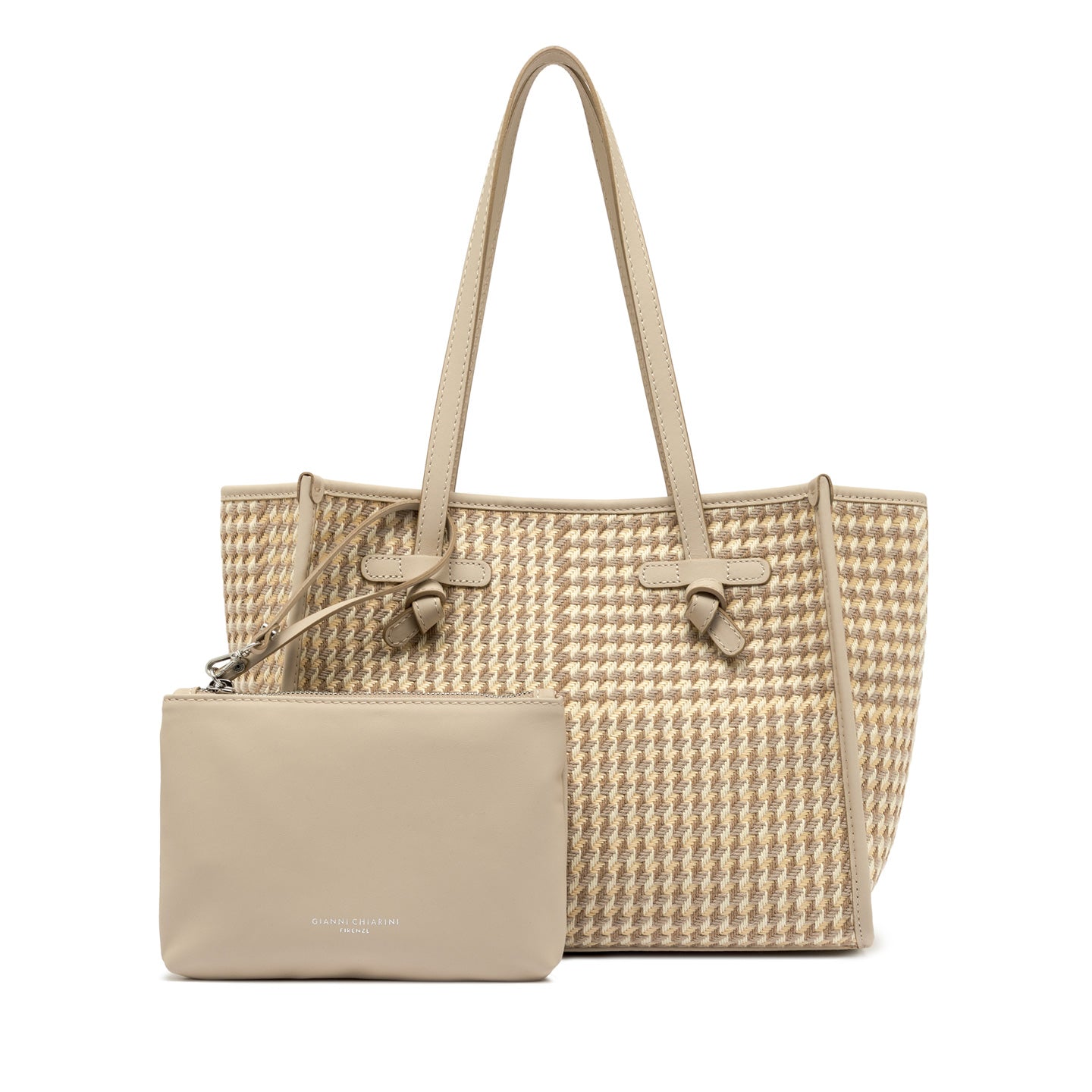 La shopping Marcella by Gianni Chiarini Firenze, dal design semplice e moderno, è realizzata in tessuto pied de poule, per un’eleganza senza tempo rivisitata in chiave contemporanea. I profili in pelle ne esaltano le linee essenziali, mentre i manici in tono e la chiusura con magnete la rendono ideale per un uso quotidiano. Completa il modello una pochette interna coordinata, perfetta per organizzare al meglio gli spazi. Dimensioni: 38x31x16 cm.