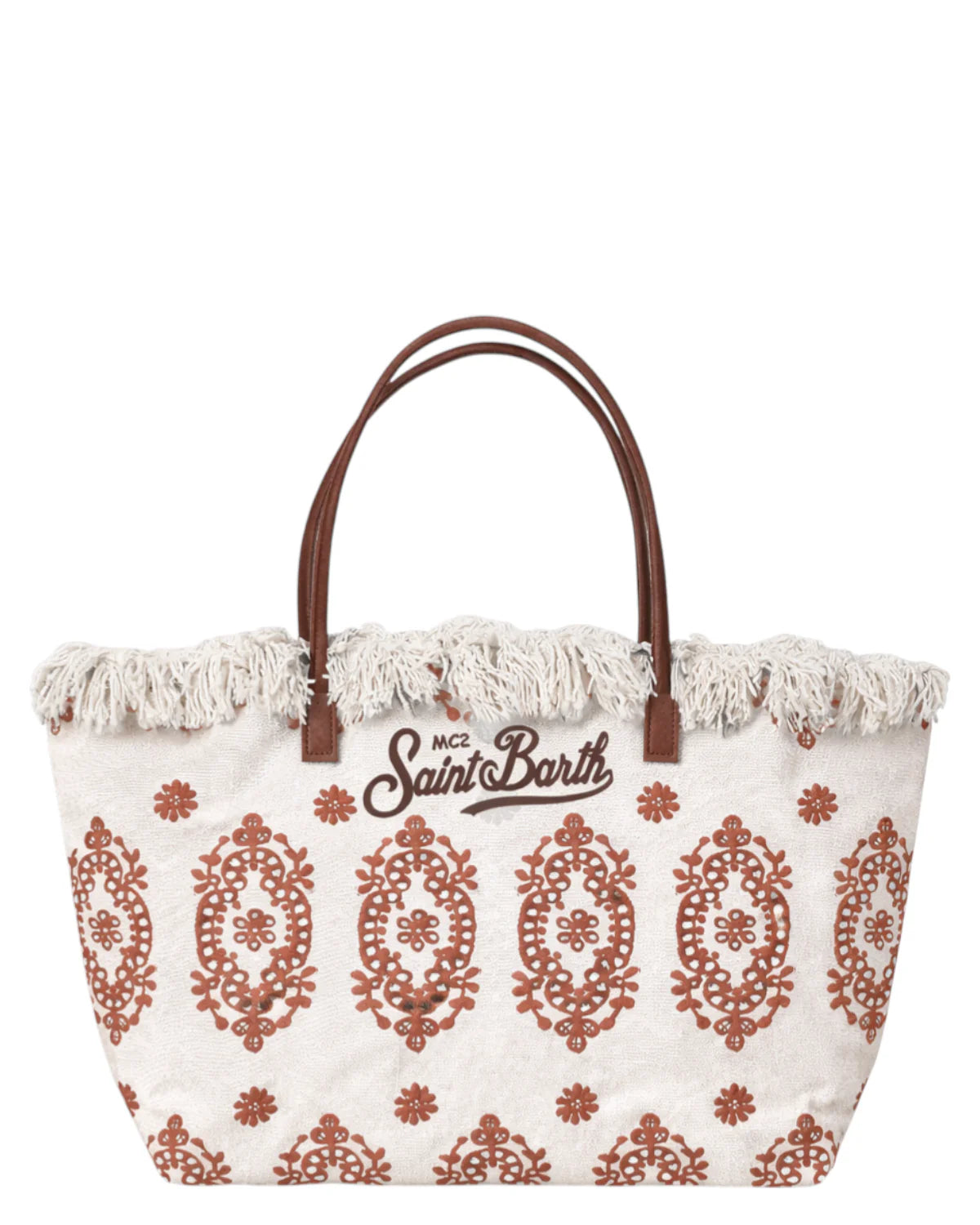 Il bordo superiore con frange dona movimento e carattere, esaltando lo stile fresco e femminile del modello. Il logo ricamato frontale rafforza l’identità iconica del brand, mentre la silhouette ampia garantisce massima praticità.